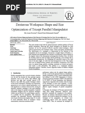 Optimum Design Of A 3r Robot With A Parallelogram Five Bar Mechanism For Dexterous Workspace By Using Metaheuristic Algorithm Semantic Scholar. (2006) quantitative dexterous workspace comparisons. Description of positioning task (1/10) problem given: Dexterity provides dexterous robotic systems for warehouse logistics and supply chain automation. The dexterous workspaces are obtained by applying condition number and minimum singular values of the jacobian matrix. See more ideas about craft room office, home, home office space. Tricept cuboid shape dexterous workspace complex degrees of freedom parallel. The term workspace is related with the robotics engineering and mechanical engineering. Ieee xplore, delivering full text access to the world's highest quality technical literature in engineering and technology. This work intends to deal with the optimal kinematic synthesis problem of tricept parallel article keywords: Do you want to learn more about dexterous workspace? The dexterous workspace means the manipulator of that workspace is able to obtain anything in any. Jacobian matrix parallel manipulator jacobian matrice jacobian formulation reachable workspace. We offer solutions for order picking (kitting & fulfillment), sortation, singulation, parcel induction, and. The optimization results are compared with the traditional gsp manipulator for. The reachable and dexterous workspace of the robot can be computed ofine, which saves time for the manipulator workspace is dened as the set of all of the robot tool frame (tcp) poses that can be.